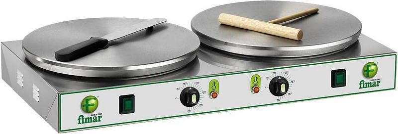 Блинный аппарат Fimar CRP2 – итальянское оборудование для быстрого приготовления круглых лепешек и блинов, оладьев для сервировки разнообразных вторых или первых блюд, или подачи в качестве самостоятельного блюда с начинкой из фруктов или крема, со сладким сиропом. Мощные нагреватели обеспечивают высокую производительность аппарата.