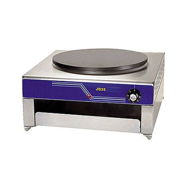 Блинница Kocateq JB35 имеет нержавеющий корпус, одну жарочную поверхность с тефлоновым покрытием — блины легко переворачиваются, не пригорают. Такой аппарат позволяет быстро и качественно готовить блины в кафе, заведениях фаст-фуда, закусочных. Порция теста наливается на конфорку и равномерно распределяется деревянным шпателем специальной формы, входящим в комплект оборудования. Блин готовится быстро, отлично пропекается. В аппарате предусмотрен подогреваемый выдвижной ящик, куда можно складывать для недлительного хранения готовые блины. Подключение блинницы 220В.