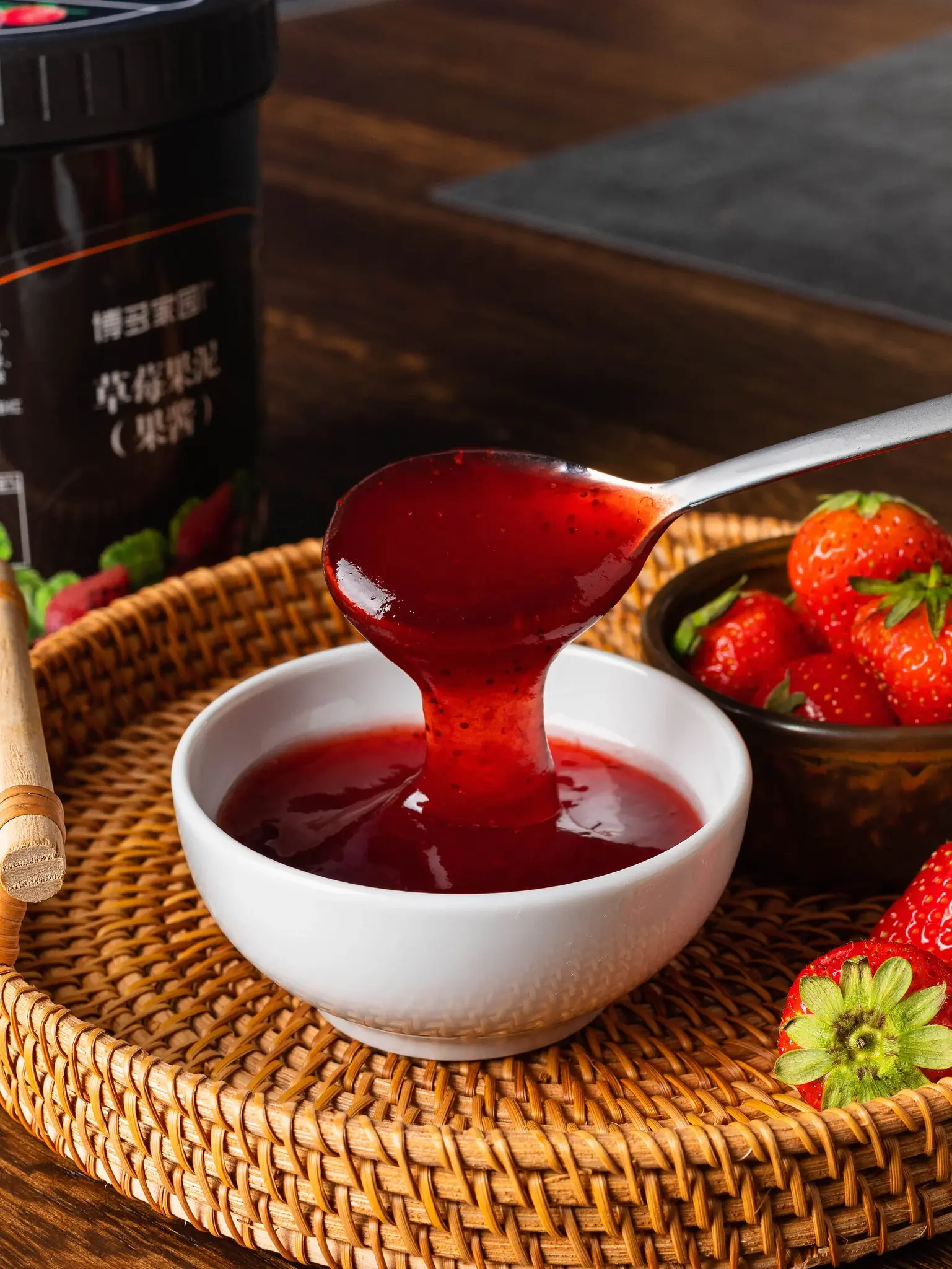 Клубничный джем обладает ярким, насыщенным фруктовым вкусом. Придаёт напиткам приятную сладость и нежное ягодное послевкусие. Используется для коктейлей, фруктовых чаев и йогуртовых напитков. Из 1кг джема можно приготовить более 30 напитков по 500 мл.