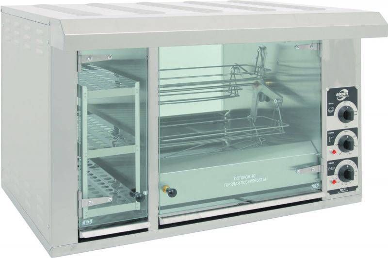 Гриль для кур Сиком МК-8.8В – оборудование бизнес-класса, оснащенное тепловой витриной для поддержания при температуре реализации и демонстрации готовой продукции. Используется преимущественно для приготовления кур-гриль целыми тушками, половинками, в виде филе и окорочков.