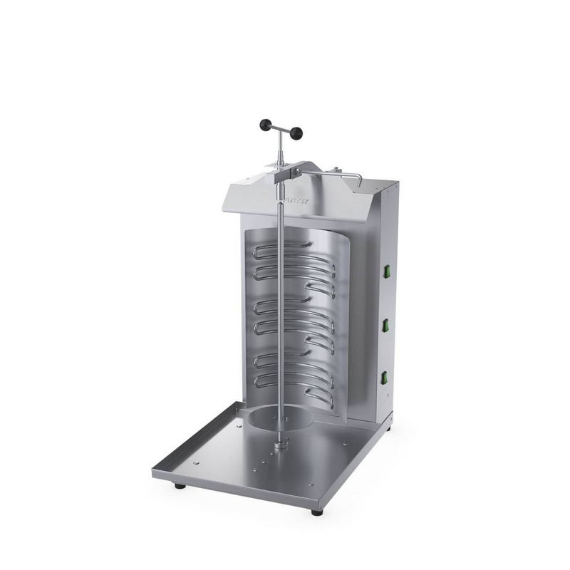 Гриль для шаурмы Атеси Шаурма-3-Эл-05-Оц – представитель серии оборудования для заведений быстрого питания: бистро и стрит-фудов для приготовления горячего восточного блюда – шаурмы. Принцип эксплуатации оборудования – насаживание мясного филе на вертикальную стойку и сформирование мясного цилиндра с последующей жаркой бесконтактным способом при помощи инфракрасного нагрева.