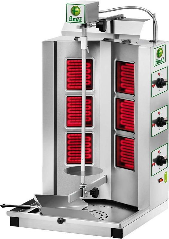 Аппарат для приготовления шаурмы Fimar GYR60 осуществляет термическую обработку мяса для кебаба. Шесть ТЭНов защищены жаростойким стеклом и керамическим покрытием. Модель незаменима для заведений общественного питания: закусочных, пиццерий, кафе и ресторанов. Изделие отличается легкостью ухода и экономичным энергопотреблением.