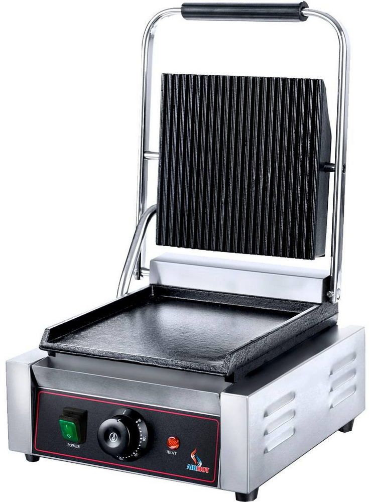 Контактный гриль Airhot CG-FG — электрический однозонный гриль с комбинированными жарочными поверхностями. Корпус выполнен из нержавеющего сплава. Устанавливается настольно. Позволяет быстро, буквально 3-5 минут, выполнять обжарку многих продуктов: мяса, морепродуктов, сендвичей, овощей. Специальные пружины обеспечивают максимальный контакт нагретых ТЭНом поверхностей с продуктами, что позволяет получать высокое качество прожарки.