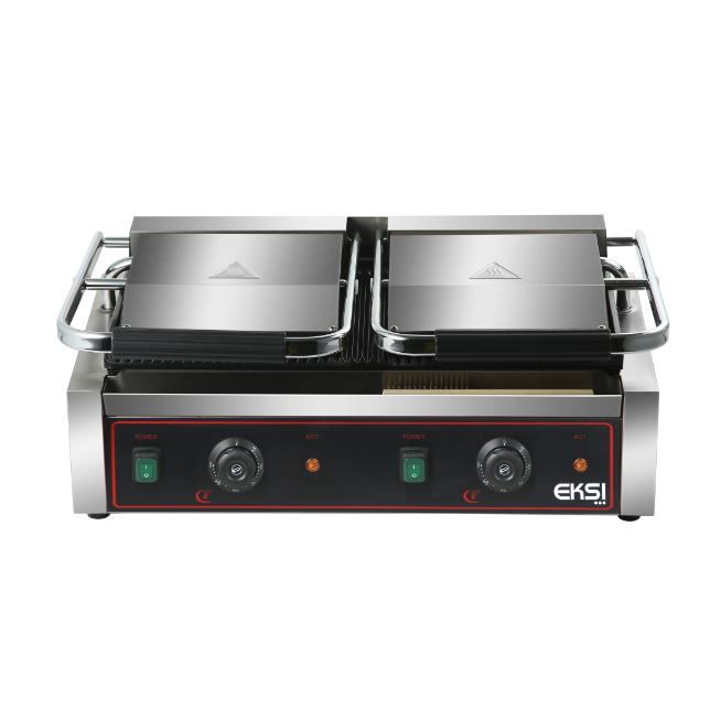 Гриль контактный EKSI HEG-813-MT – устройство для жарки, быстрой готовки блюд из мяса. Имеет 2 зоны нагрева, что увеличивать скорость и объем приготовления. Для регулирования температуры нагрева предусмотрен терморегулятор.