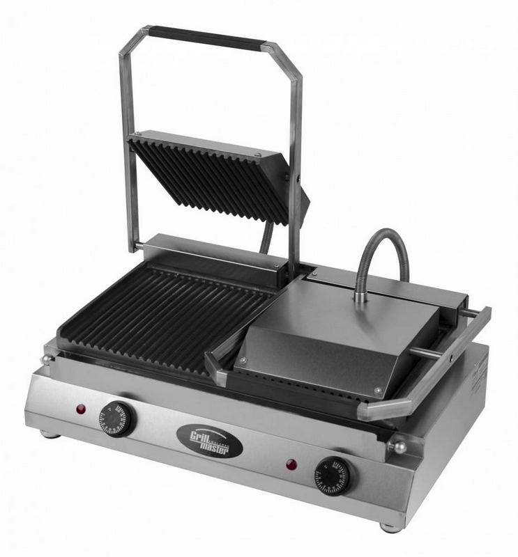 Гриль контактный GRILL MASTER Ф4ктЭ предназначен для быстрой и качественной жарки продуктов на предприятиях общественного питания и торговли. Все корпусные элементы изготовлены из пищевой нержавеющей стали.
