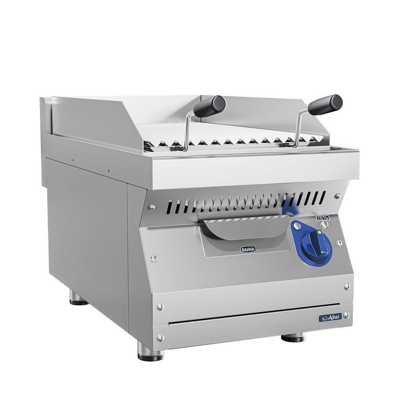 ABAT ЭГЛ-40/1Н-01 - предназначен для жарки мяса, рыбы, овощей путём непосредственного контакта решётки гриля с одной стороной продукта на предприятиях общественного питания и торговли. Имеет лоток для сбора масла и регулируемые по высоте ножки.