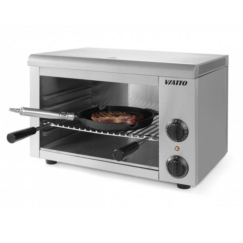 Viatto HES-938 представляет собой гриль типа Salamander. Модель предназначена для приготовления широкого спектра блюд, в том числе стейков из рыбы, мяса, гамбургеров, горячих бутербродов и так далее. В конструкции предусмотрена система поддержания готовых блюд в горячем виде.