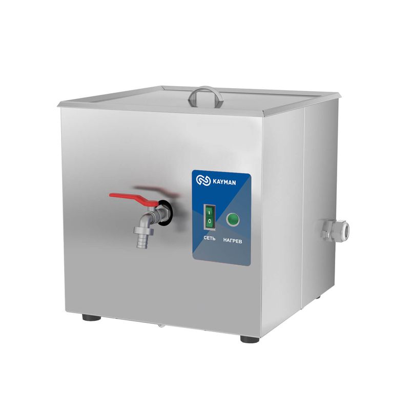 Kayman КЭ-01-100 А представляет собой проточный кипятильник для непрерывного нагрева воды и ее розлива. Аппарат рассчитан на использование на предприятия общественного питания и торговых точках. В модели установлен блок для управления нагревом, система исключает смешивание сырой воды с кипятком. Корпус и внутренняя часть выполнены из нержавеющей стали марки AISI430.