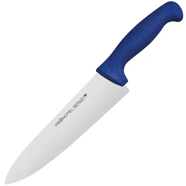 Поварской нож «Проотель» — профессиональный инструмент премиум-класса с увеличенными параметрами для выполнения самых сложных кулинарных задач. Благодаря массивной конструкции и широкому лезвию идеально подходит для работы с крупными продуктами в условиях интенсивной эксплуатации.