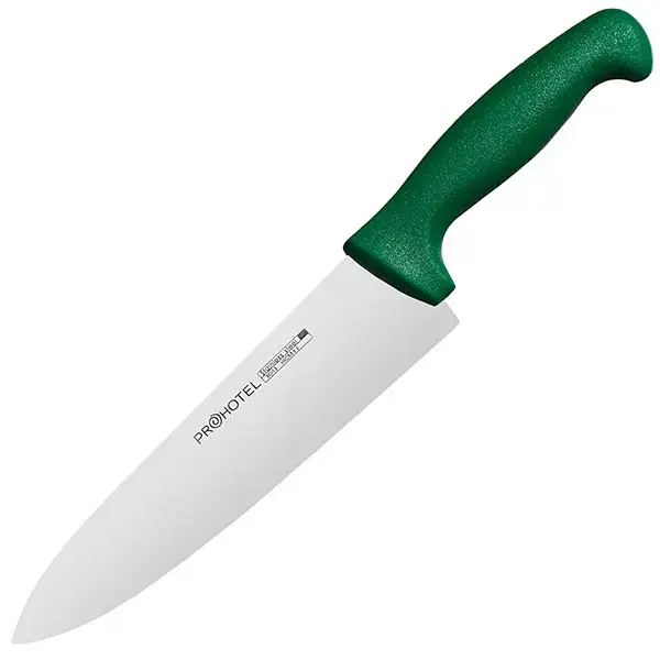 Поварской нож «Проотель» — профессиональный инструмент премиум-класса с увеличенными параметрами для выполнения самых сложных кулинарных задач. Благодаря массивной конструкции и широкому лезвию идеально подходит для работы с крупными продуктами в условиях интенсивной эксплуатации.