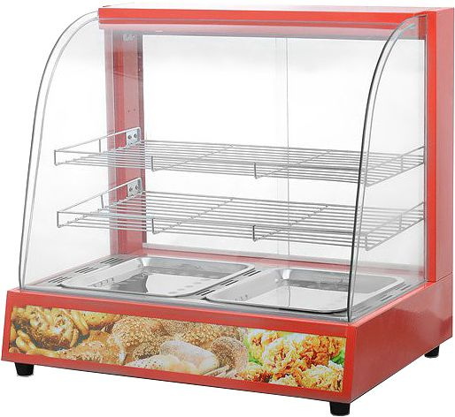Витрина тепловая настольная Rosso HW-2P используется для поддержания блюд в теплом состоянии. Данная модель оборудована терморегулятором, декоративной подсветкой для лучшей демонстрации продуктов, удобным переключателем для настройки температуры, двумя нержавеющими стальными полками и двумя емкостями.